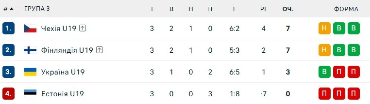 Підсумкова турнірна таблиця групи А3